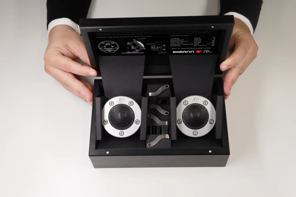 25 mm Hochtöner mit geringer Einbautiefe und einem detaillierten und dynamischen Klangbild.