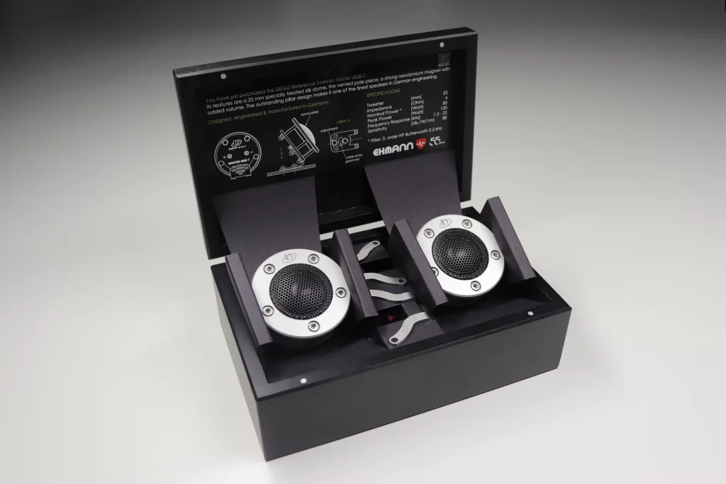 Der speziell beschichtete 25 mm Seidenkalotten-Hochtöner wird von einem belüfteten Neodym-Magnetsystem mit angekoppeltem Volumen angetrieben. Das Ergebnis ist eine wesentlich offenere und detailliertere Klangwiedergabe. Das massive Aluminiumgehäuse garantiert eine optimale Wärmeableitung.
