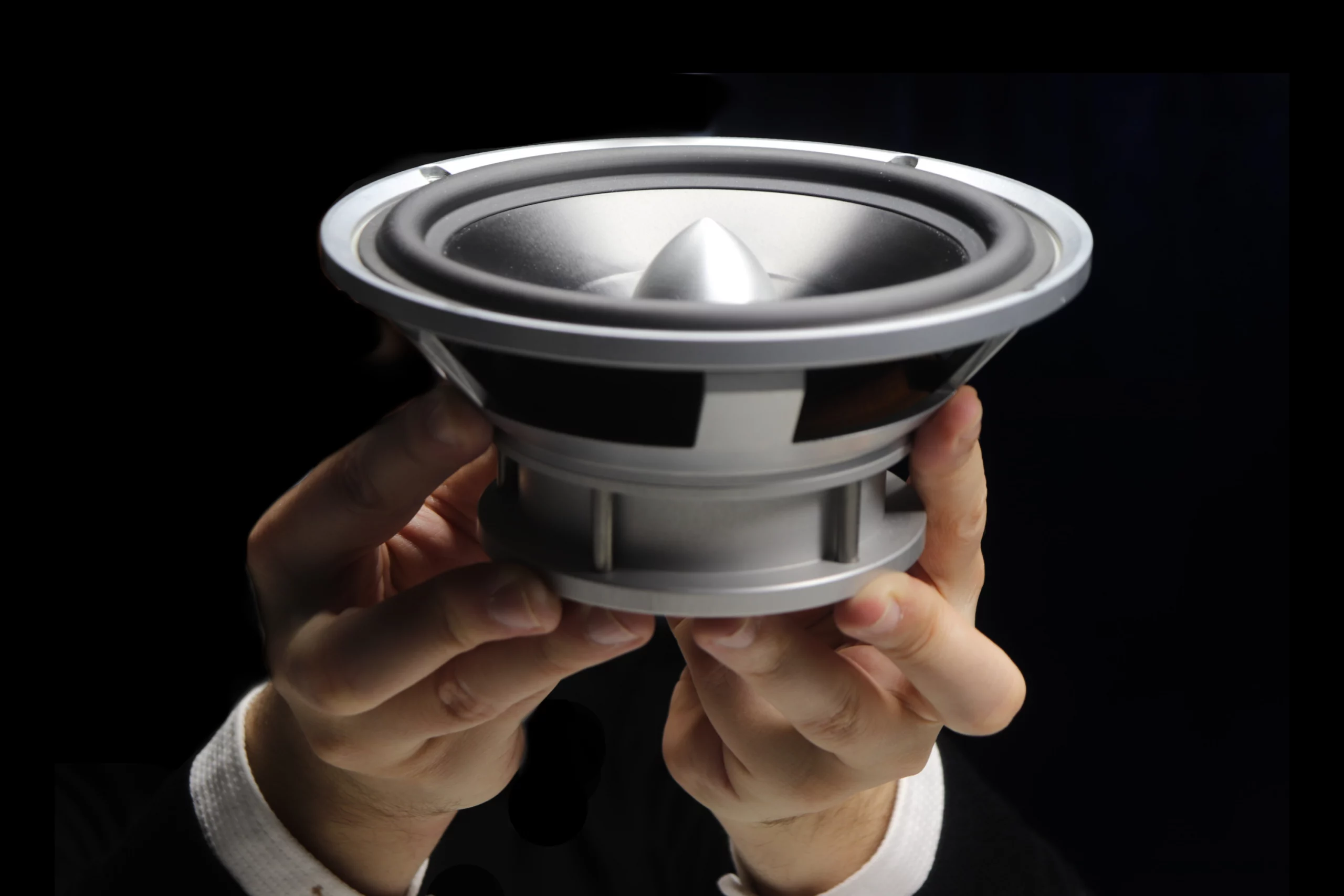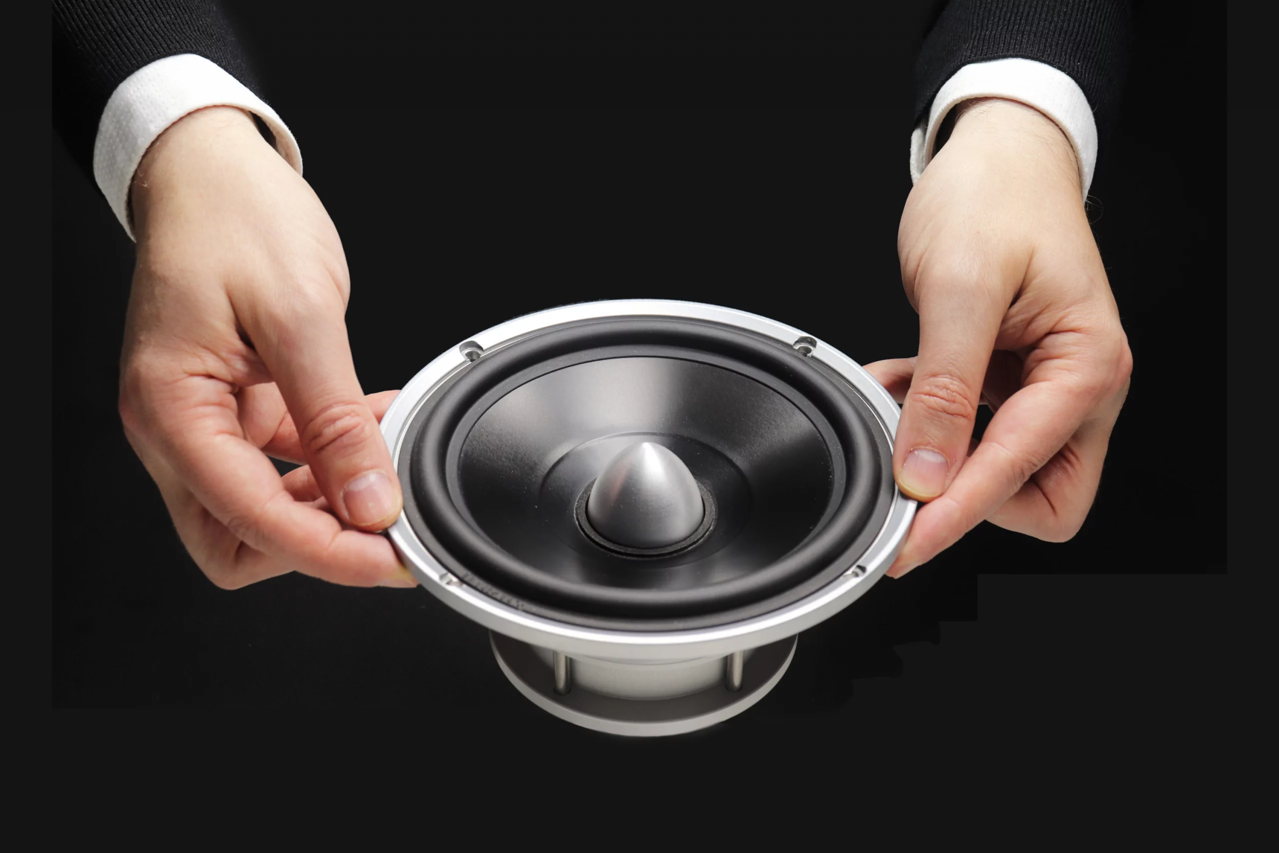165 mm Tiefmitteltöner mit resonanzdämpfender Membranprägung und Aluminium-Kalotte. Diese R.A.C.E.-Technologie vermindert Eigenresonanzen der Aluminium-Membran. Der stabile Aluminium-Druckgusskorb biete eine optimale Polkernventilierung.
